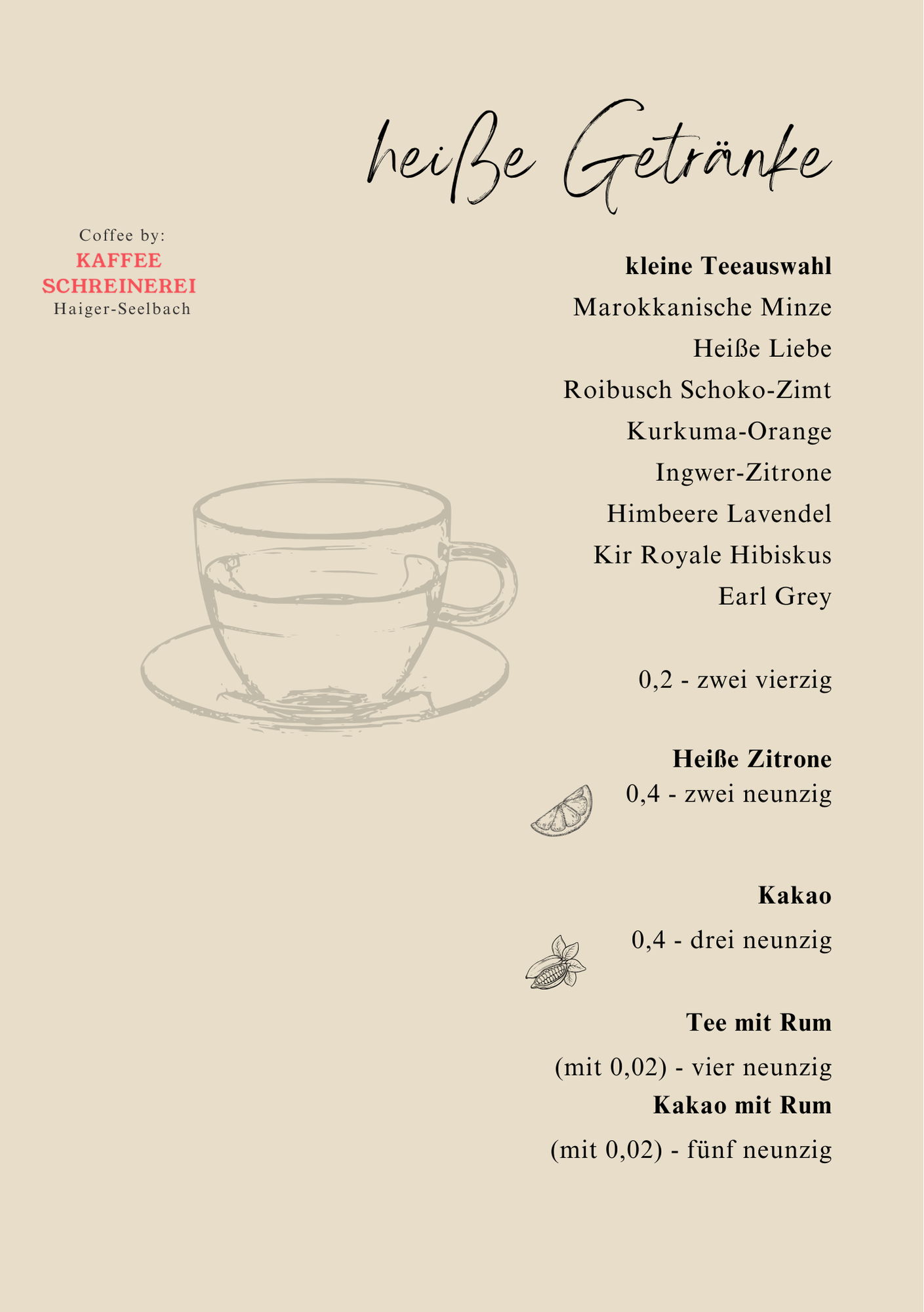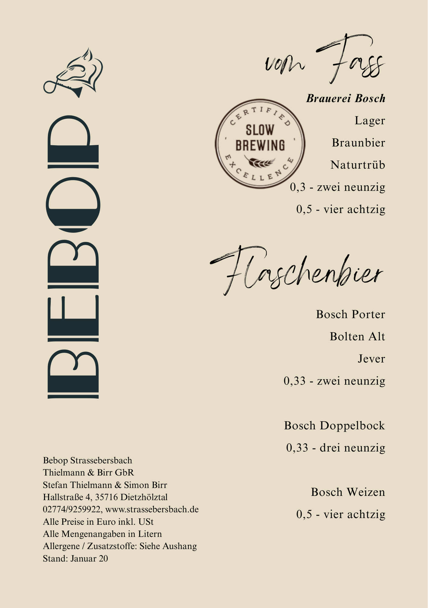 Hin und wieder gibt es gute Livemusik, im kommenden Jahr wird das Angebot mit kultureller Vielfalt ausgebaut. Der Kaffee wird wenige Kilometer entfernt geröstet. Ein Weinkeller wächst stetig. Die Whiskyauswahl ist auf hohem Niveau und das regionale Bier der Bosch-Brauerei kommt direkt vom Fass, sogar als trübes Zwickel-Bier, so wie früher in Strassebersbach.